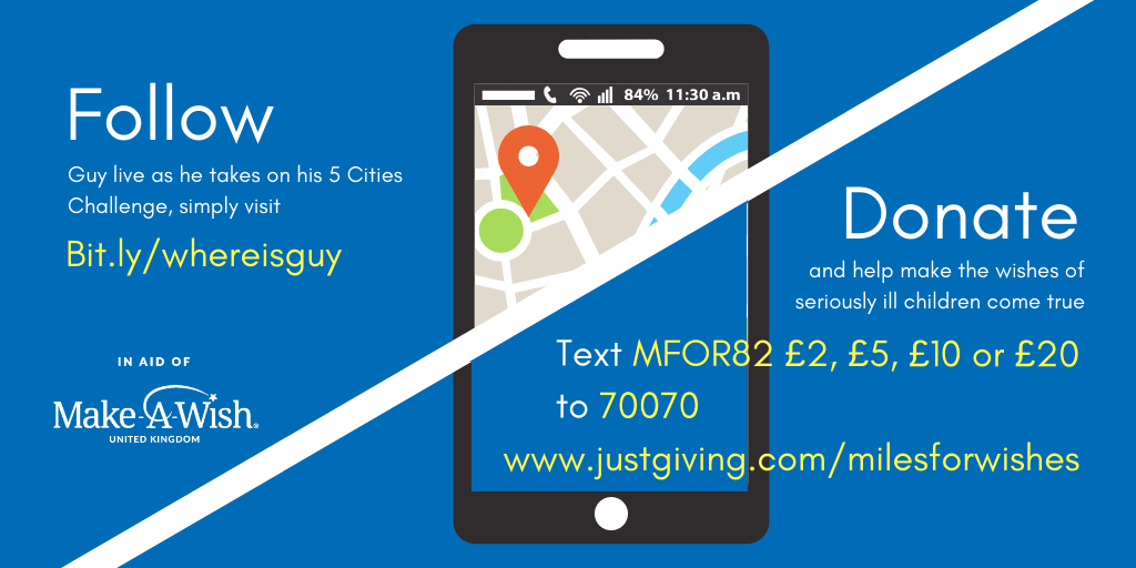 As ever this challenge is in order to raise money and awareness of Make-A-Wish UK and the incredible work they do to support children, and their families, living with the challenge of a life threatening illnesses.