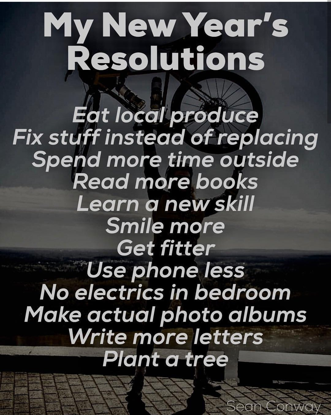 I follow loads of runners and cyclists and I am in awe of some of the goals and challenges people are setting themselves – showing their commitment to something they love and making a statement about how hard they are going to work for it – that in itself is inspiring. On the flipside, following the likes of Sean Conway and Al Humphries, who have similarly been sharing their own aspirations, has put a very different spin on things – see Shaun’s resolutions for 2019 below as an example;