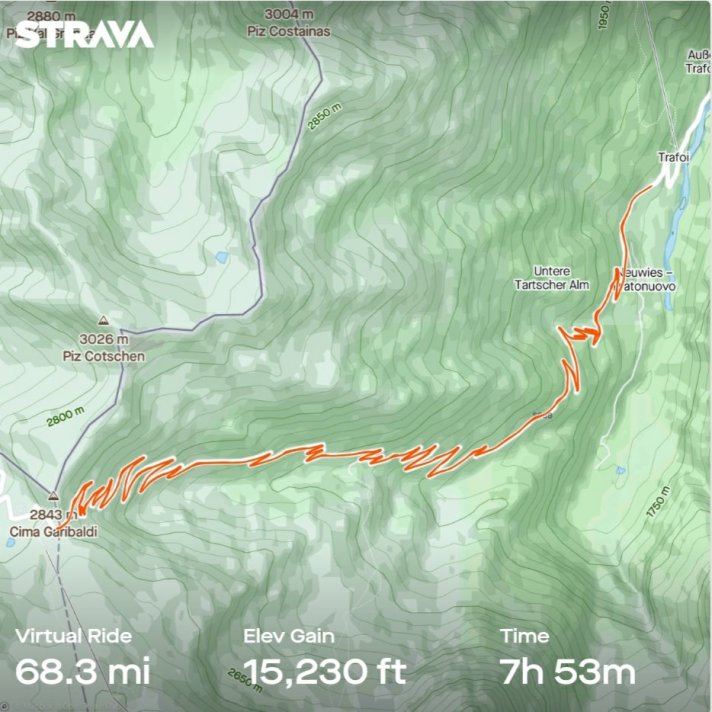 Keeping the virtual challenges up, I switched from The Sufferfest to RGT Cycling, an alternative indoor cycling app – like Zwift but based on real roads and more realistic graphics. On my birthday I podiumed on the London Calling Crit race (a first for me), then came 5th on the Gran Pienza race a day later. This was let down slightly by the instability of the platform (it’s a relative newcomer, compared to Zwift which is now 6 years old) and a screen crash at the start of the Race to the Lighthouse on day 3. The culmination of my little Tour was to be an unofficial vEveresting of the Passo Dello Stelvio – 8 ascents up the virtual climb to cycle the equivalent height of Mt Everest (8,848m). I’d love to say I completed the full ascent but I ended the challenge at the halfway point – 4 ascents and 4,424m climbed – I’d set off too hard and was playing catch up with hydration and fuel and I was suffering badly with pains in my feet (an issue sorted later in June). With the longer term in mind, I opted to protect the body and stop.