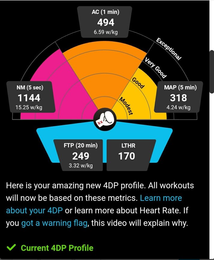 I rounded of the month with the 4DP Full Frontal test, Sufferfest’s gruelling FTP test, in order to set the power I’d need to be riding the challenge at. If you’ve never done the 4DP test, I’d recommend it as its different to a standard FTP and the results provide some interesting insights in to your strengths and weaknesses as a rider (based on how you performed).