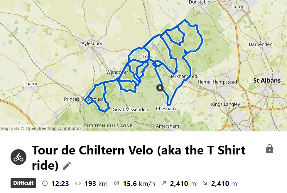 So the ‘Tour de Chiltern Velo’ ride will be a total of 193km and nearly 2,500m of climbing