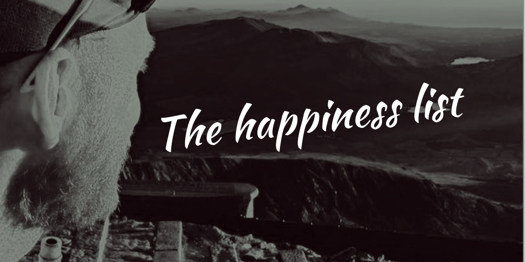 I’ve been trying to set my goals for 2019 and it’s been a hard process to arrive at something tangible, some goals that mean something. The process is hard because with the challenges I've done I seem to be on a path now where I feel the challenges have to become bigger, harder and have … Continue reading The happiness list
